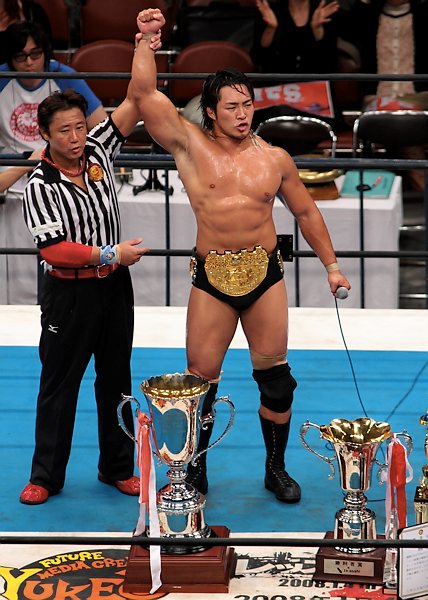 永田vs棚橋のIWGP王座戦はハイフライフロー(言うなればファイブスターの低空高速版?)で棚橋のピン勝ち。